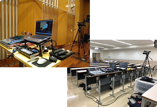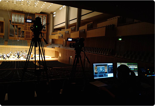 オンラインレッスンから収容人数1,800人のコンサートホールまでコンサート・ライブ・セミナー・シンポジウム・舞台などの会場に当社スタッフがお伺いしての配信となります。